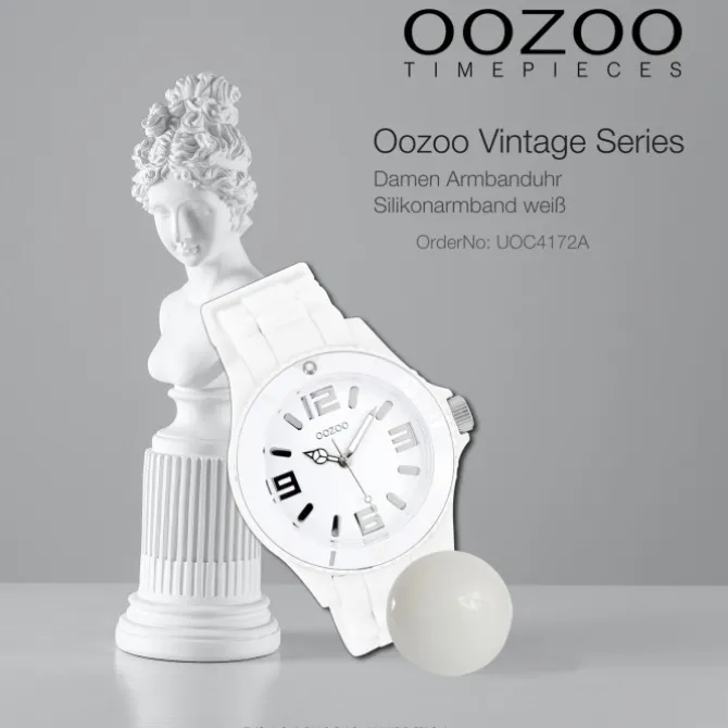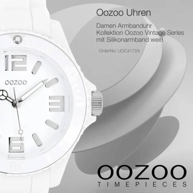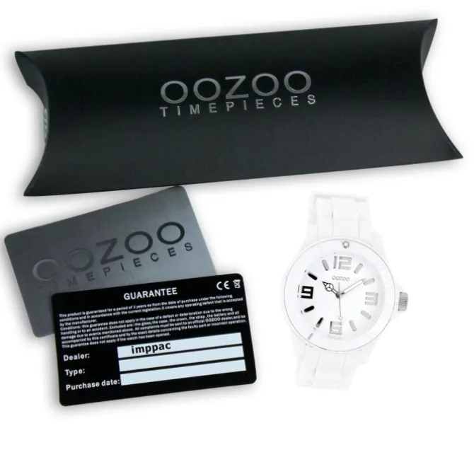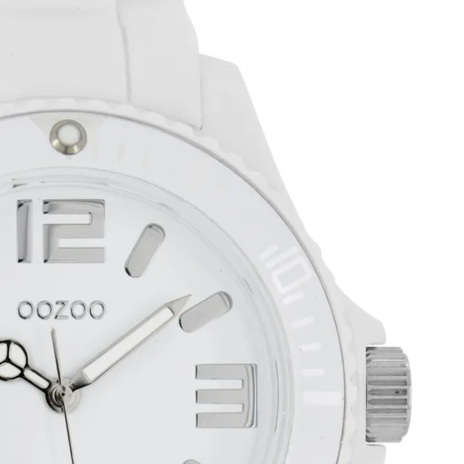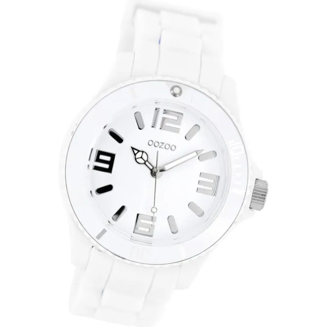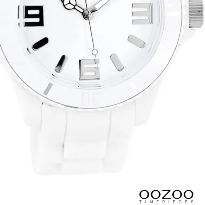 Diese Fashion Uhr für Damen und Herren aus der exklusiven Oozoo Oozoo Vintage Series-Kollektion verfügt über ein hochwertiges Silikon-Armband in weiß. Das Gehäuse der Uhr ist groß (ca. 43mm). Das analoge Uhrwerk und das Uhrenglas aus Mineralglas machen diese Armbanduhr zu einem hochwertigen und modischen Begleiter.