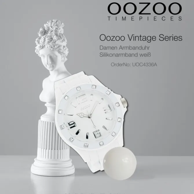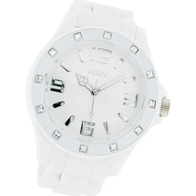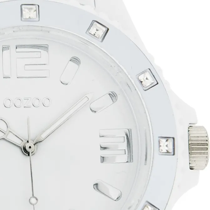 Diese Fashion Uhr für Damen und Herren aus der exklusiven Oozoo Oozoo Vintage Series-Kollektion verfügt über ein hochwertiges Silikon-Armband in weiß. Das Gehäuse der Uhr ist extra groß (ca. 48mm). Das analoge Uhrwerk und das Uhrenglas aus Mineralglas machen diese Armbanduhr zu einem hochwertigen und modischen Begleiter.