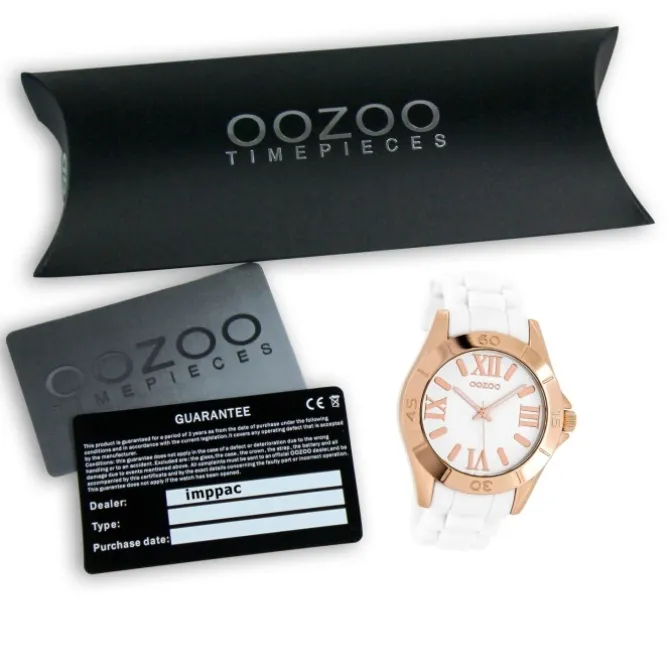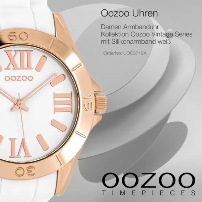 Diese Fashion Uhr für Damen und Herren aus der exklusiven Oozoo Oozoo Vintage Series-Kollektion verfügt über ein hochwertiges Silikon-Armband in weiß. Das Gehäuse der Uhr ist groß (ca. 41mm). Das analoge Uhrwerk und das Uhrenglas aus Mineralglas machen diese Armbanduhr zu einem hochwertigen und modischen Begleiter.
