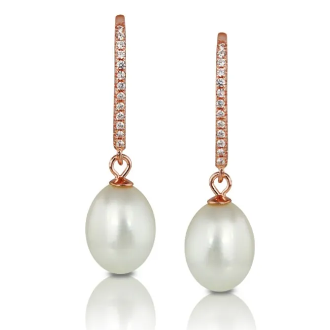 - Ohrhänger Süßwasser Perle rose vergoldet mit Zirkonia aus 925 Silber