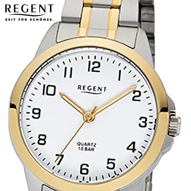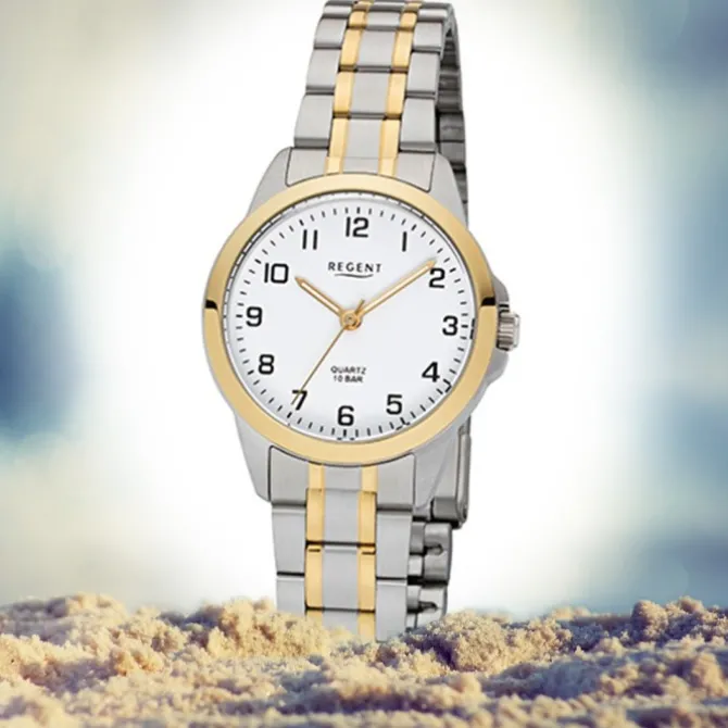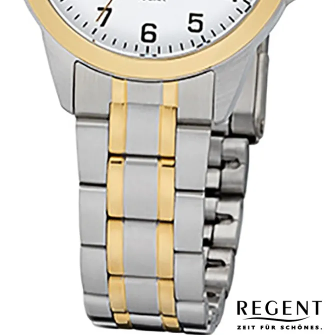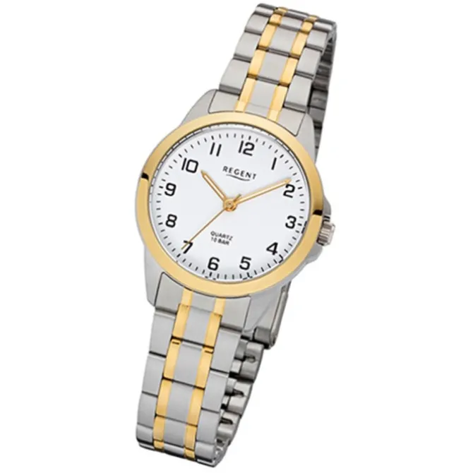 - Kurzbeschreibung: Regent Damen-Armbanduhr 32-F-1006 Quarz-Uhr Edelstahl-Armband silber gold URF1006