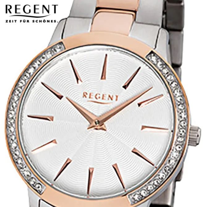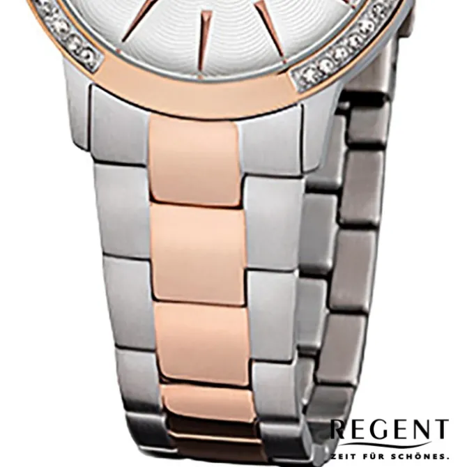 - Kurzbeschreibung: Regent Damen-Armbanduhr 32-F-1056 Quarz-Uhr Edelstahl-Armband silber rosegold URF1056