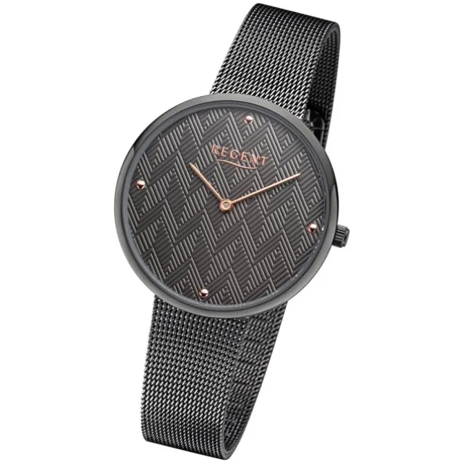 Diese elegante Uhr für Damen aus der exklusiven Regent Metallarmband-Kollektion verfügt über ein hochwertiges Edelstahl-Armband in grau. Das analoge Quarzwerk und die Wasserdichte bis 3 bar machen diese Armbanduhr zu einem besonders zuverlässigen Begleiter.