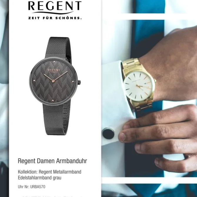 REGENT – Zeit für Schönes. Die Uhren verfolgen eine klare Linie – sie sind zeitlos schön, klassisch und funktional. Durch ihre Robustheit und Leichtigkeit garantieren sie höchsten Tragekomfort. Regent ist Ihr Garant für ein Top Preis-/Leistungsverhältnis.
