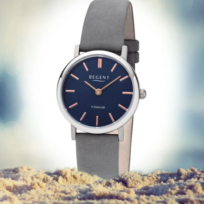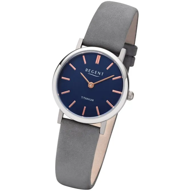 Diese elegante Uhr für Damen aus der exklusiven Regent Lederarmband-Kollektion verfügt über ein hochwertiges Leder-Armband in grau. Das analoge Quarzwerk und die Wasserdichte bis 3 bar machen diese Armbanduhr zu einem besonders zuverlässigen Begleiter.