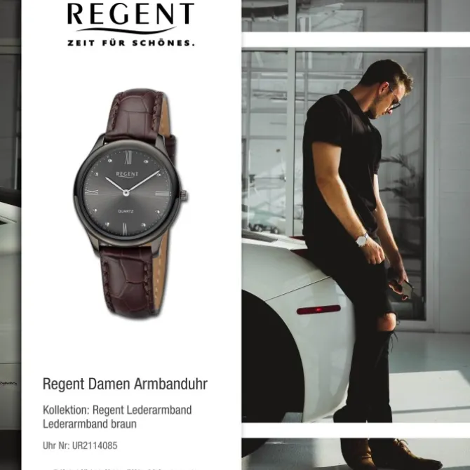 Seit seiner Gründung im Jahr 1983 hat das Uhrenlabel Regent kontinuierliche Entwicklung und Qualitätsansprüche gepflegt. Unter dem Slogan -Zeit für Schönes- betonen die Uhren zeitlose Eleganz und verleihen Ihrem Stil eine tolle Ausstrahlung.