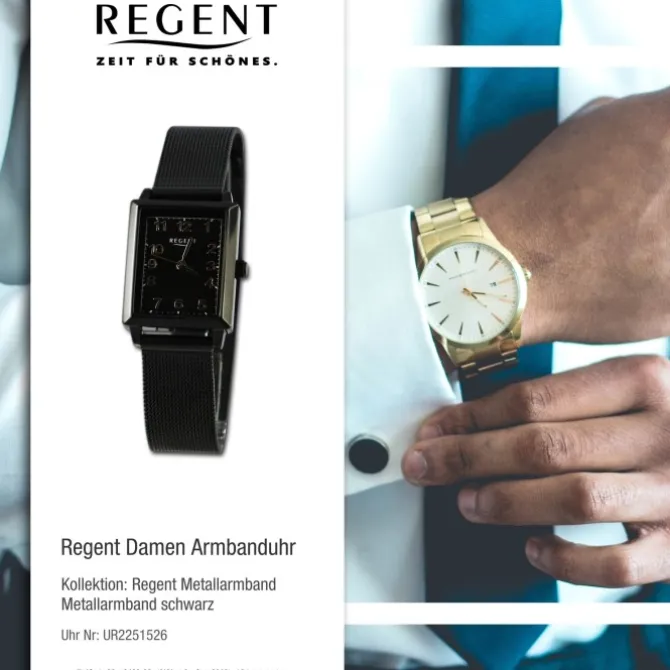 Seit seiner Gründung im Jahr 1983 hat das Uhrenlabel Regent kontinuierliche Entwicklung und Qualitätsansprüche gepflegt. Unter dem Slogan -Zeit für Schönes- betonen die Uhren zeitlose Eleganz und verleihen Ihrem Stil eine tolle Ausstrahlung.