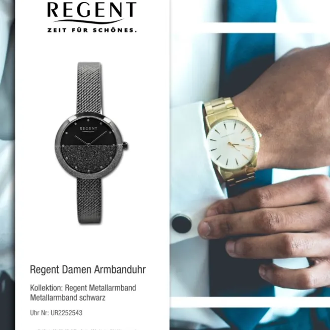 Die Regent Metallarmband-Kollektion bietet zeitgemäßes Design und Robustheit in einem. Diese Uhren sind perfekte Begleiter für jeden Anlass mit ihrem modernen Look und langlebigen Material.