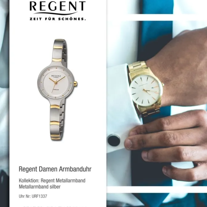Mit kontinuierlicher Weiterentwicklung seit 1983 zeichnet sich das Uhrenlabel Regent durch gutes Design und hohe Qualität aus. Unter dem Motto -Zeit für Schönes- betonen die Uhren zeitlose Eleganz und setzen Ihre persönliche Eleganz gekonnt in Szene.