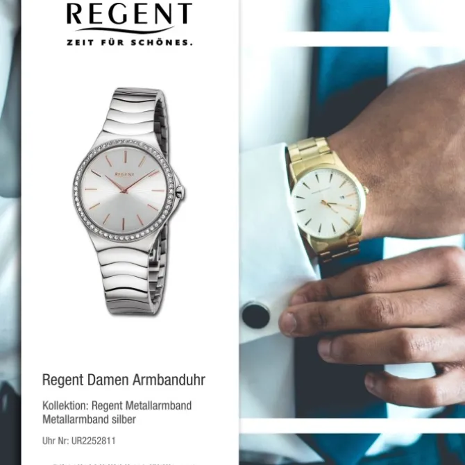 Die Regent Metallarmband-Kollektion bietet zeitgemäßes Design und Robustheit in einem. Diese Uhren sind perfekte Begleiter für jeden Anlass mit ihrem modernen Look und langlebigen Material.