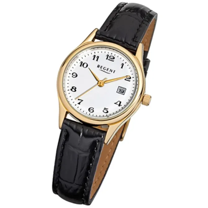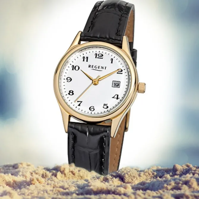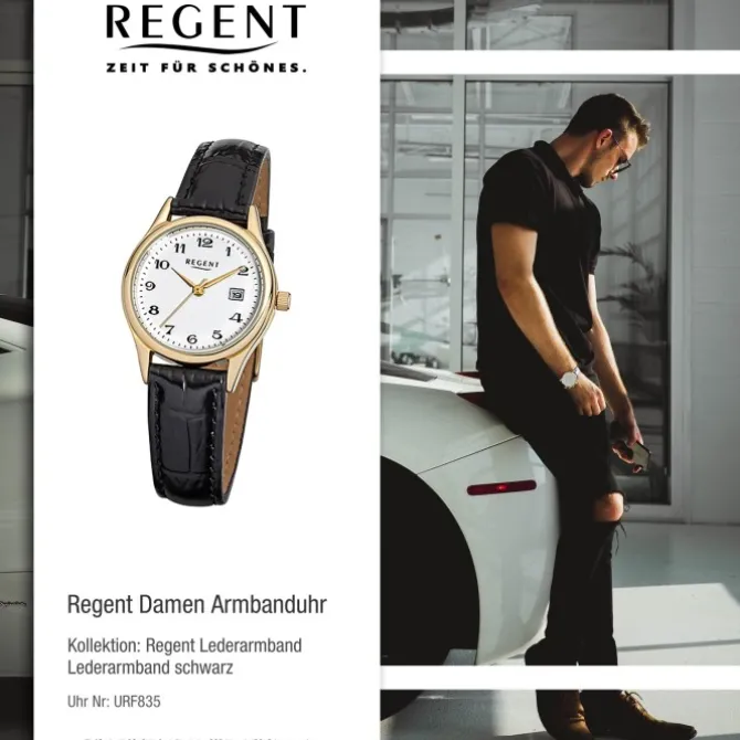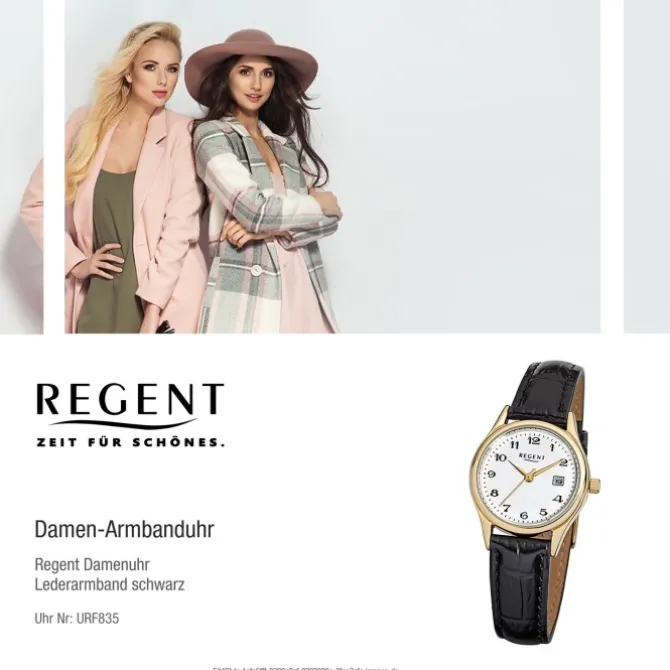 - Kurzbeschreibung: Regent Damen-Armbanduhr F-835 Quarz-Uhr Leder-Armband schwarz URF835