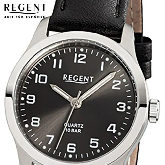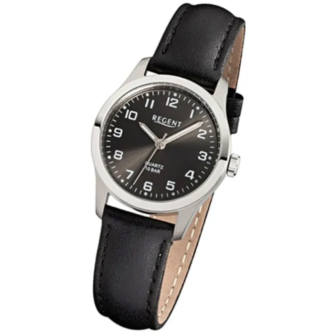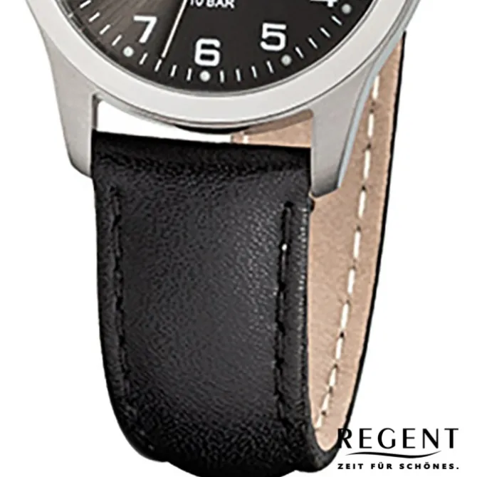 - Kurzbeschreibung: Regent Damen-Armbanduhr F-900 Titan-Uhr Leder-Armband schwarz URF900