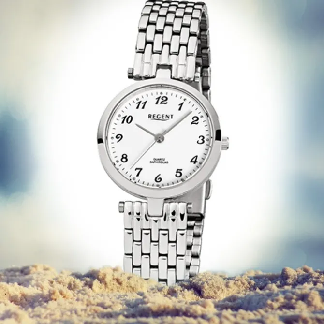 - Kurzbeschreibung: Regent Damen-Armbanduhr F-908 Quarz-Uhr Stahl-Armband silber URF908