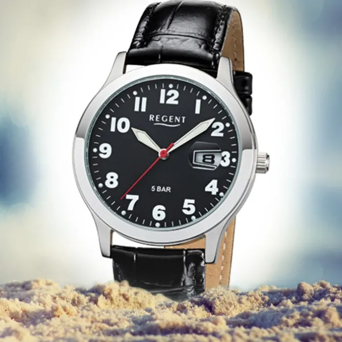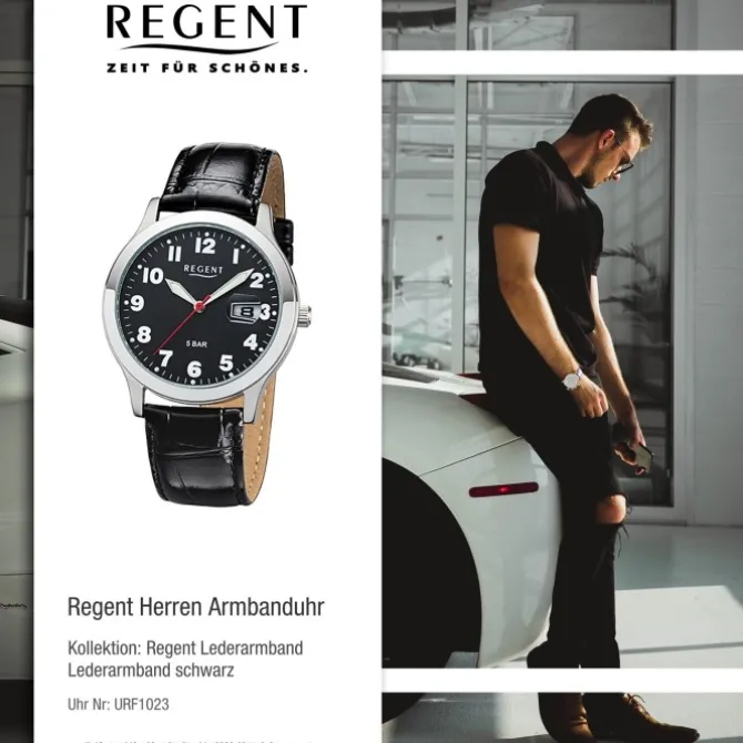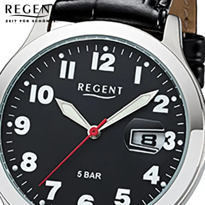 - Kurzbeschreibung: Regent Herren-Armbanduhr 32-F-1023 Quarz-Uhr Leder-Armband schwarz URF1023