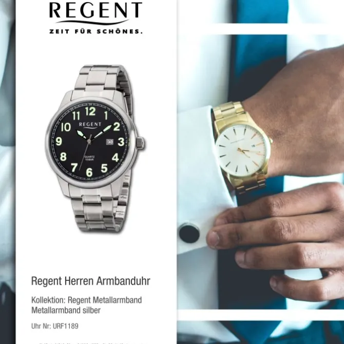 REGENT – Zeit für Schönes. Die Uhren verfolgen eine klare Linie – sie sind zeitlos schön, klassisch und funktional. Durch ihre Robustheit und Leichtigkeit garantieren sie höchsten Tragekomfort. Regent ist Ihr Garant für ein Top Preis-/Leistungsverhältnis.