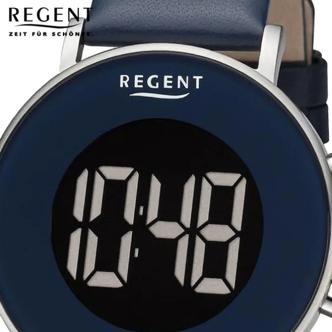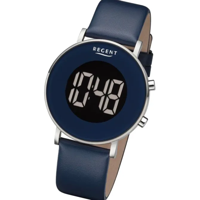 Diese Casuale Armbanduhr für Herren ist aus der exklusiven Regent Lederarmband-Kollektion. Sie hat ein hochwertiges Leder-Armband in dunkelblau. Das Gehäuse der Uhr ist extra groß (ca. 40mm). Das digitale Uhrwerk und das Uhrenglas aus Mineralglas machen diese Armbanduhr zu einem hochwertigen und modischen Begleiter.