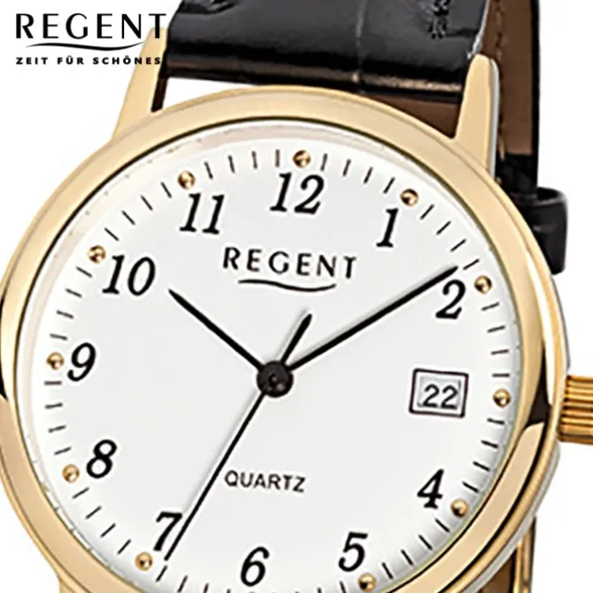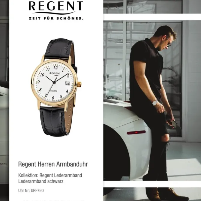 - Kurzbeschreibung: Regent Herren-Armbanduhr F-790 Quarz-Uhr Leder-Armband schwarz URF790