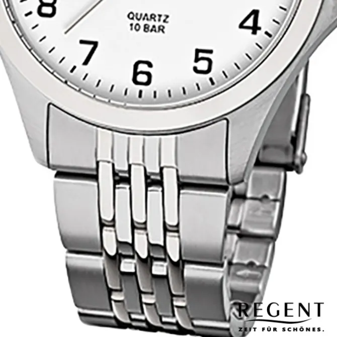 Regent Herren-Armbanduhr F-916 Quarz-Uhr Stahl-Armband silber grau URF916