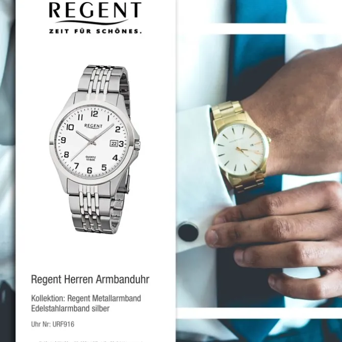 REGENT – Zeit für Schönes. Die Uhren verfolgen eine klare Linie – sie sind zeitlos schön, klassisch und funktional. Durch ihre Robustheit und Leichtigkeit garantieren sie höchsten Tragekomfort. Regent ist Ihr Garant für ein Top Preis-/Leistungsverhältnis.