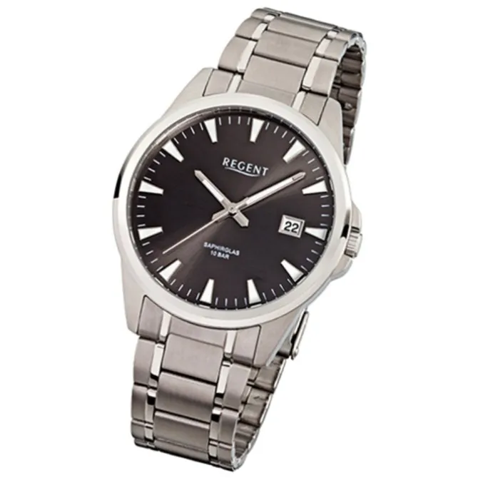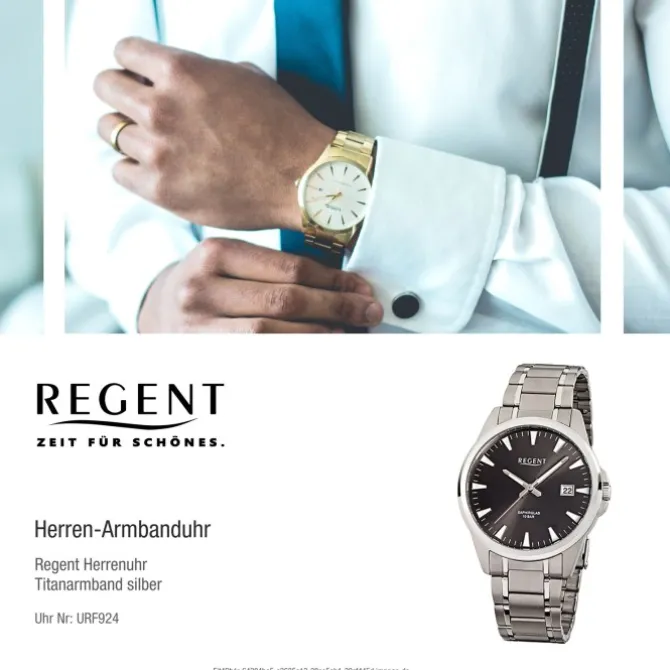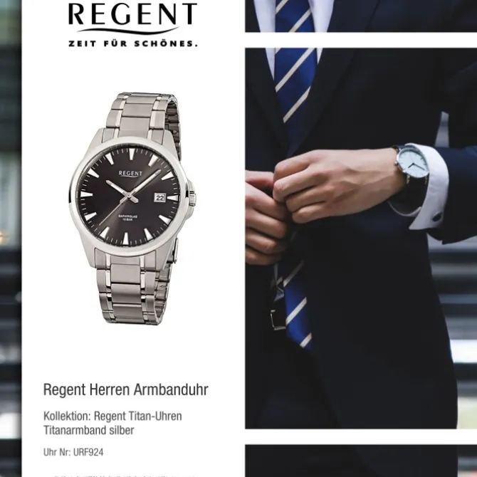 - Kurzbeschreibung: Regent Herren-Armbanduhr F-924 Quarz-Uhr Titan-Armband silber URF924