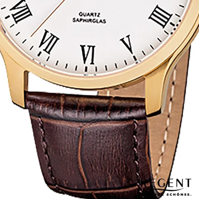 - Kurzbeschreibung: Regent Herren-Armbanduhr F-961 Quarz-Uhr Leder-Armband braun URF961