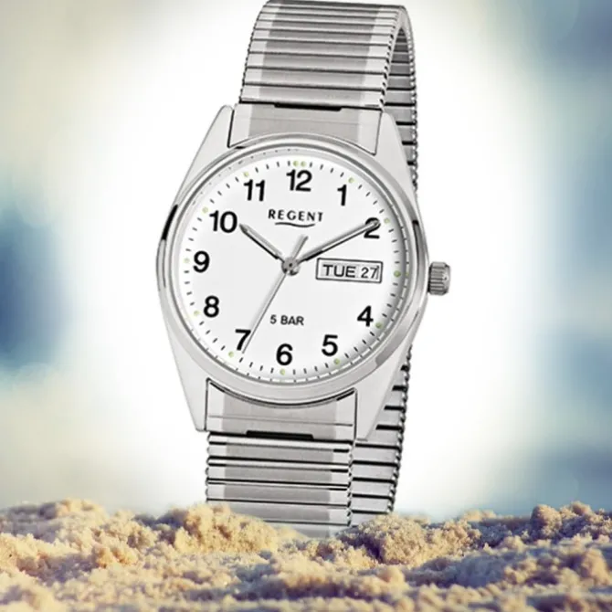 Sie mögen keine Uhren mit Verschluss? Dann sind Regent Uhren mit Zugband genau das Richtige für Sie. Achtung – Fertig – Angezogen. Schnell, einfach und bequem tragen sich diese Uhren.