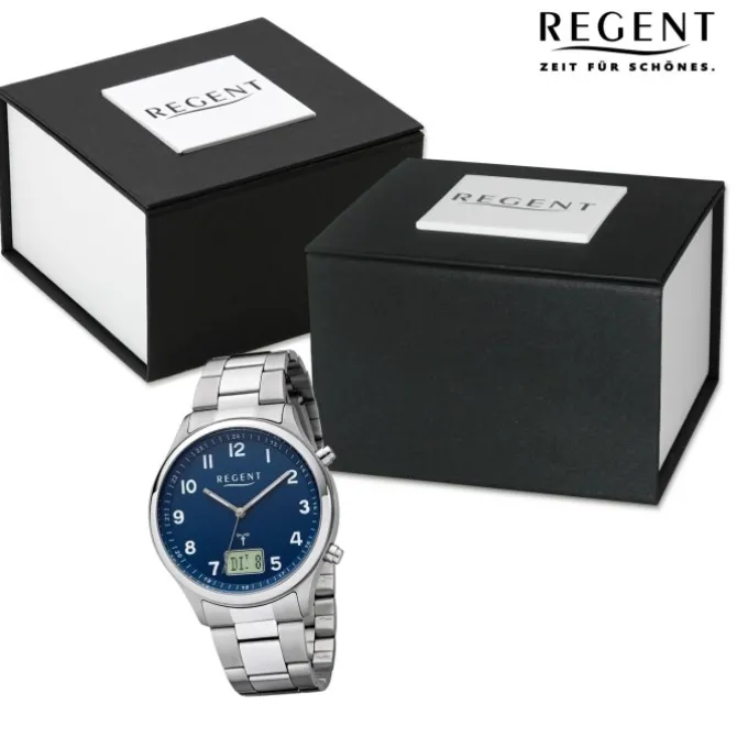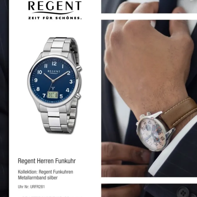 Die Regent Funkuhren-Kollektion kombiniert präzise Zeitmessung mit innovativer Technologie. Die Uhren bieten stets die genaue Uhrzeit und begeistern mit ihrem modernen Design.