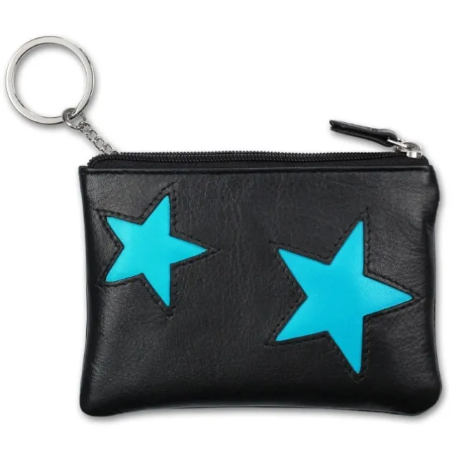 Schlüsseltasche Leder schwarz, türkis Schlüsseletui – DrachenLeder