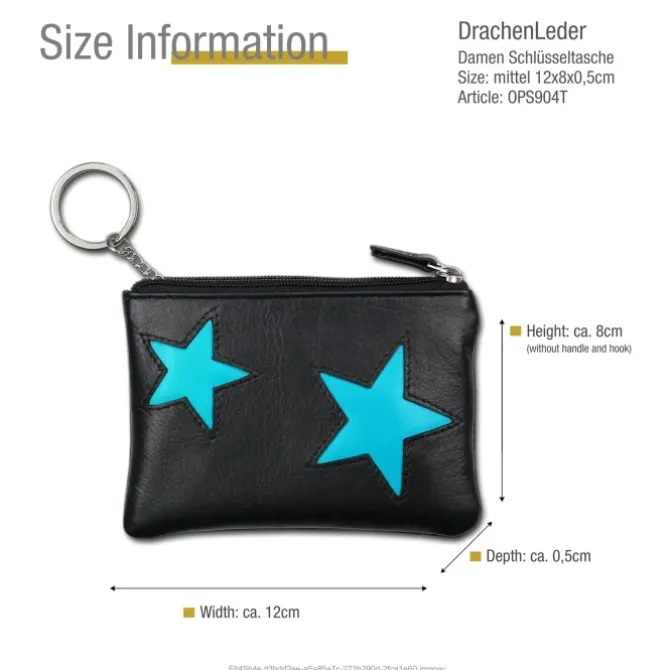 - Kurzbeschreibung: Schlüsseltasche Leder schwarz, türkis Schlüsseletui DrachenLeder OPS904T