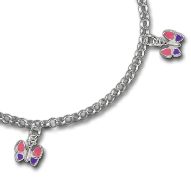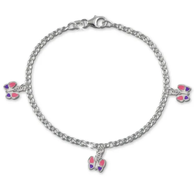 Kinder Armband 15,5cm mit 3 Schmetterlingen rosa/lila aus unserer einzigartigen SilberDream Kollektion aus anlaufgeschütztem 925 Sterling Silber mit Karabinerverschluss.