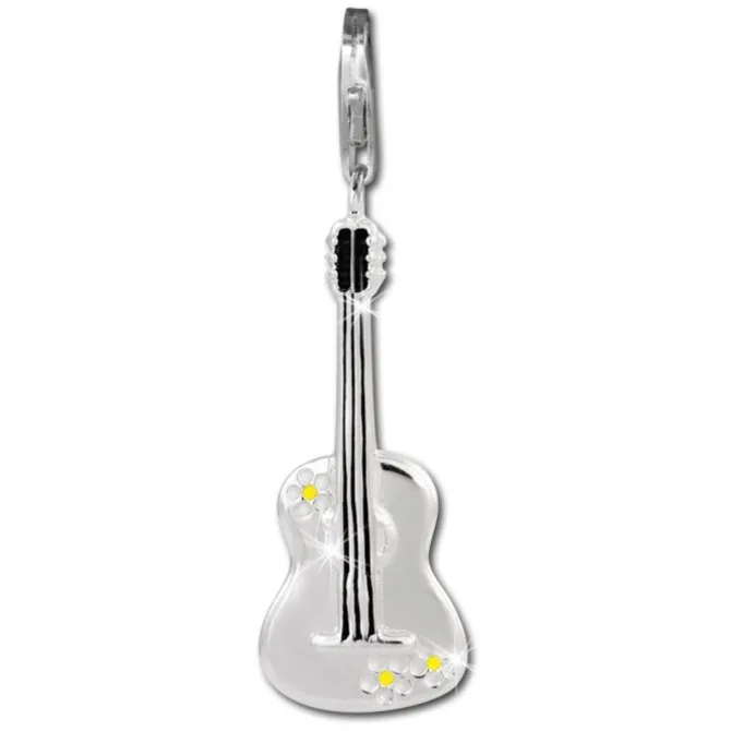 Charm Bettelarmband Anhänger aus anlaufgeschütztem 925 Sterling Silber – Gitarre mit Blumen – .