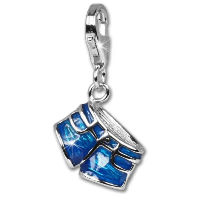 Charm Anhänger für Bettelarmband oder Ketten aus anlaufgeschütztem 925 Sterling Silber – Jeans Shorts blau – .