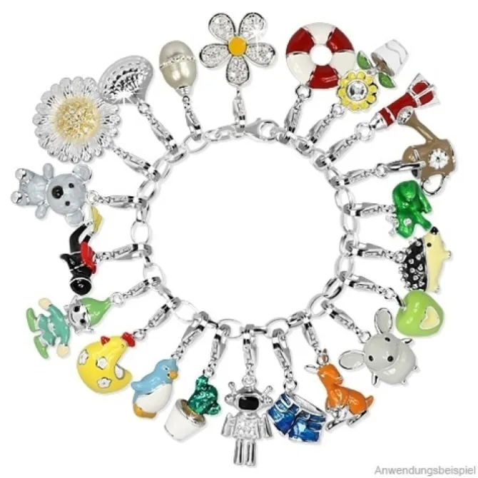 Unsere Charms Kollektion (Bettel Armband Anhänger) umfasst mehr als 9000 verschiedene Artikel. Alle Anhänger werden mit kleinen Karabinern an Bettelarmbändern und Ketten befestigt. So können diese leicht variiert und ergänzt werden. Bitte suchen Sie nach – FC – in unserer Kollektion um weitere Charms zu finden.