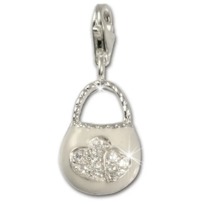 Charm Anhänger aus anlaufgeschütztem 925 Sterling Silber – Tasche weiss mit Zirkonia – .