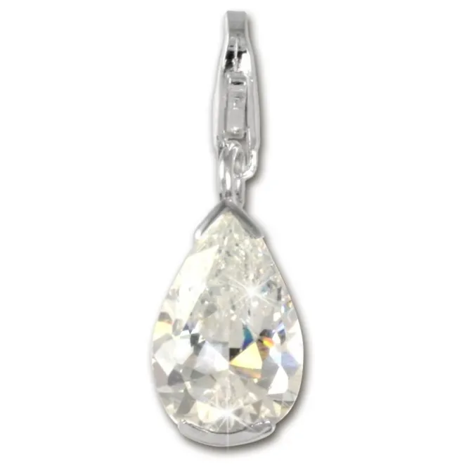 Charm Bettelarmband Anhänger aus anlaufgeschütztem 925 Sterling Silber – Träne weiß mit geschliffenem Zirkonia – .