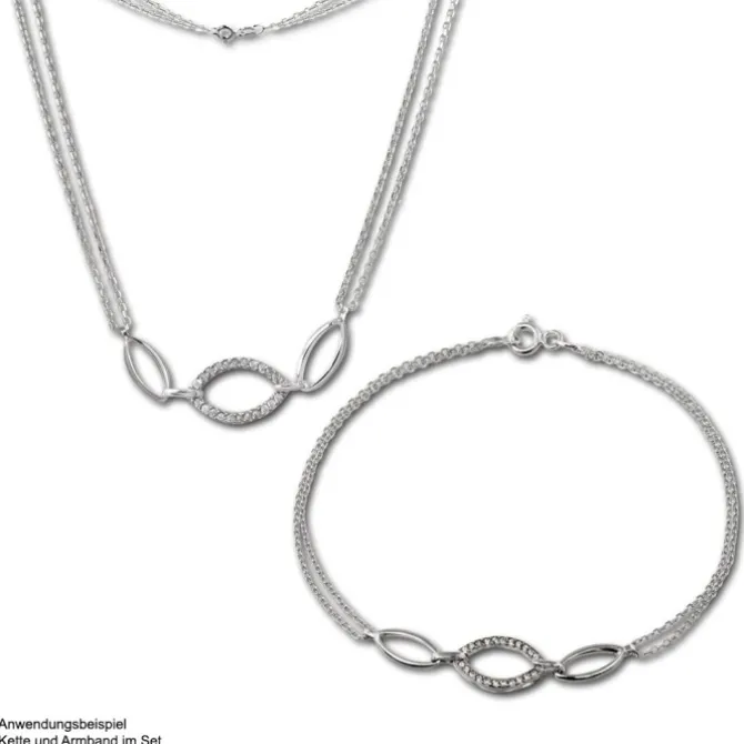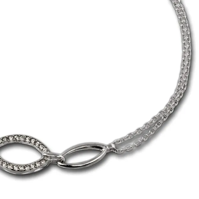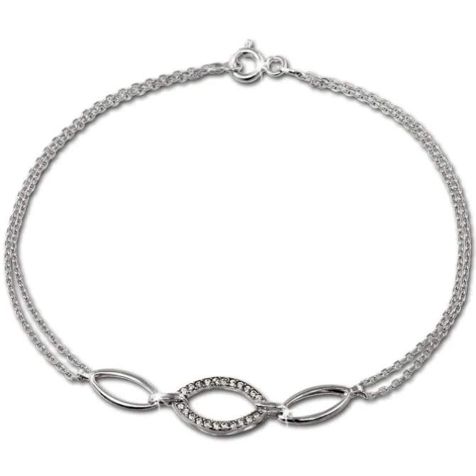Ein zartes Armband Oval Zirkonia weiß 19cm mit Karabinerverschluss. Das Armband ist aus unserer einzigartigen SilberDream Schmuck Kollektion und aus anlaufgeschütztem 925 Sterling Silber. Die Armbandkette ist doppelt und sehr fein und edel verarbeitet. Das Oval besteht aus vielen kleinen weißen Zirkonias. Dieses Armband ist auch im Set (mit Halskette) erhältlich.