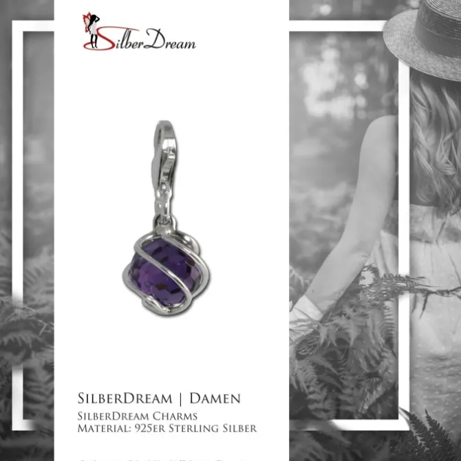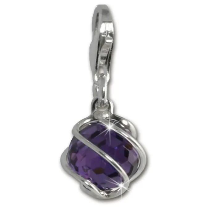 Charm Bettelarmband Anhänger aus anlaufgeschütztem 925 Sterling Silber – Zirkonia Kugel kristall lila – geschliffener Zirkonia – .