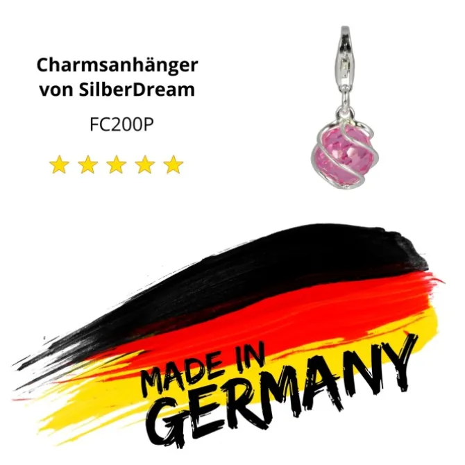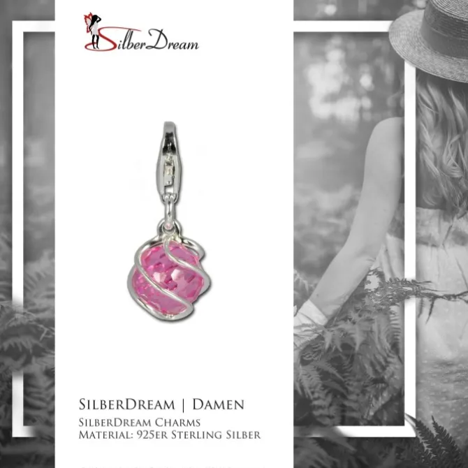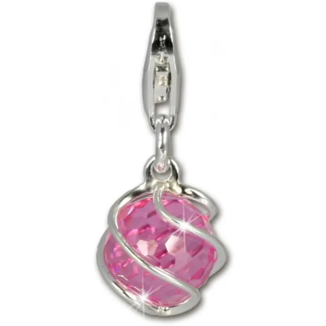 Charm Bettelarmband Anhänger aus anlaufgeschütztem 925 Sterling Silber – Zirkonia Kugel kristall rosa – geschliffener Zirkonia – .