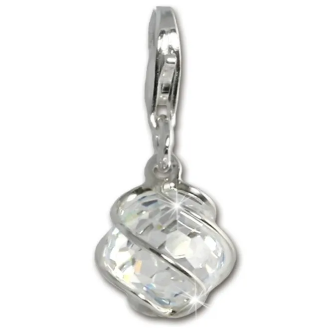 Charm Bettelarmband Anhänger aus anlaufgeschütztem 925 Sterling Silber – Zirkonia Kugel kristall weiß – geschliffener Zirkonia – .