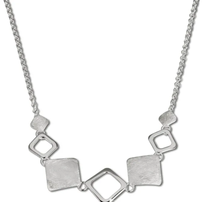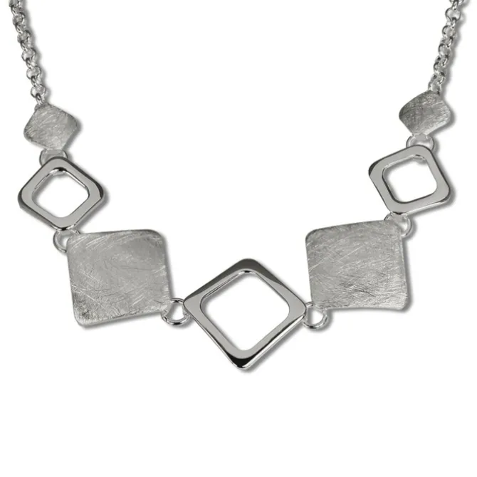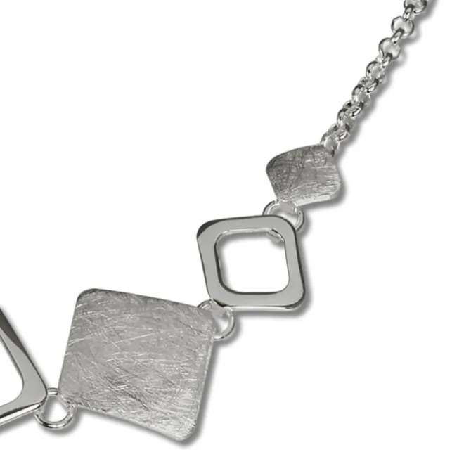 Ein modernes Kollier Karo aus matten und glänzenden Quadraten in der Länge 45cm mit Karabinerverschluss. Das Collier ist aus der einzigartigen SilberDream Schmuck Kollektion und aus allergenfreiem und poliertem 925 Sterling Silber. Diese Halskette ist auch im Set (mit Armband) erhältlich.