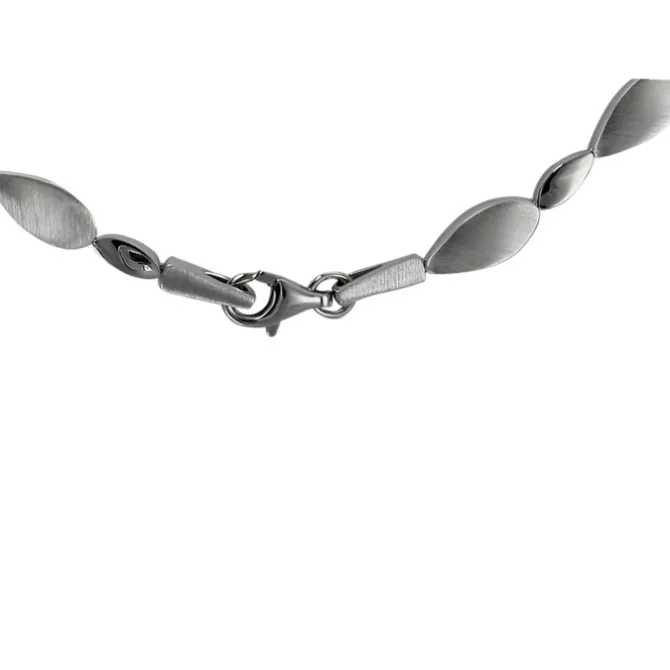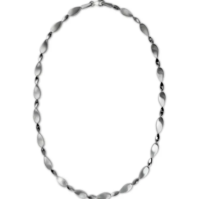 Eine moderne Collier Halskette Leaves in der Länge 45cm mit einem Karabinerverschluss. Die polierten und mattierten Glieder haben die Form von ovalen Blättern. Das Collier ist aus der einzigartigen SilberDream Schmuck Kollektion und aus allergenfreiem 925 Sterling Silber. Diese Halskette ist auch im Set (mit Armband) erhältlich.
