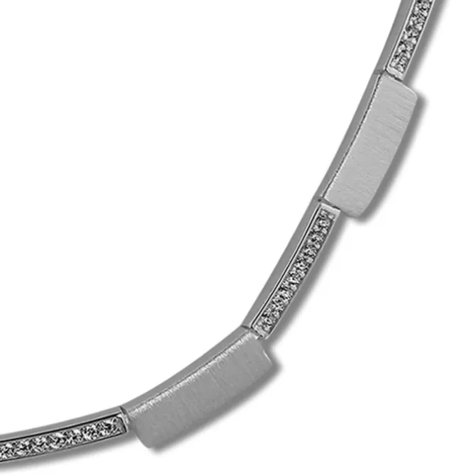 Eine moderne Collier Halskette Square Zirkonia weiß in der Länge 44,5cm mit Karabinerverschluss. Die Kette ist aus der einzigartigen SilberDream Schmuck Kollektion und aus allergenfreiem und poliertem 925 Sterling Silber. Jedes zweite Glied ist mit vielen kleinen Zirkonias verziert, die auf der Kette weiß funkelnden. Diese Halskette ist auch im Set (mit Armband) erhältlich.