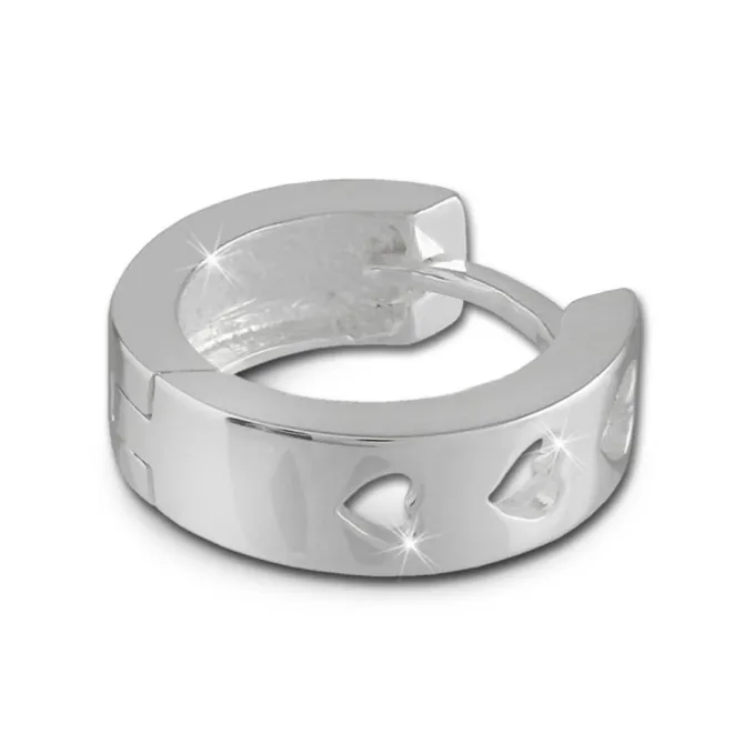 Die zwei Creolen mit einem Lochmuster Herz aus allergenfreiem 925 Sterling Silber. Diese Ohrringe sehen sehr schick am Ohr aus und sind aus unserer einzigartigen SilberDream Schmuck Kollektion.