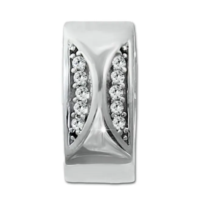 Ein Paar Creolen Moons mit weißen Zirkonia, schicke Ohrringe aus unserer einzigartigen SilberDream Schmuck Kollektion aus allergenfreiem 925 Sterling Silber. Der Durchmesser der Creolen beträgt ca. 0,9cm. Die weißen Zirkonias funkeln und leuchten auf den Ohrringen.