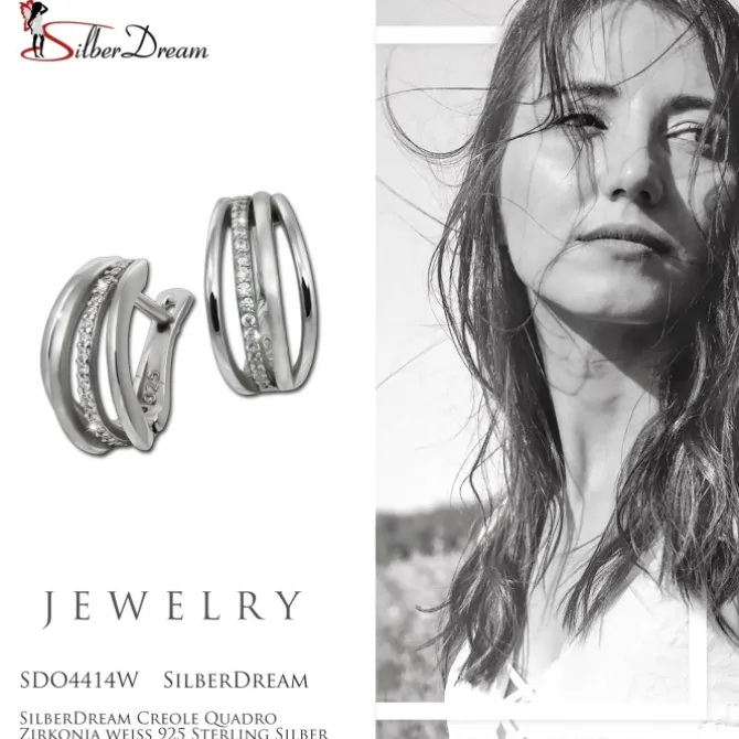 - Kurzbeschreibung: SilberDream Damenohrringe Creole Quadro Zirkonia 925er Silber