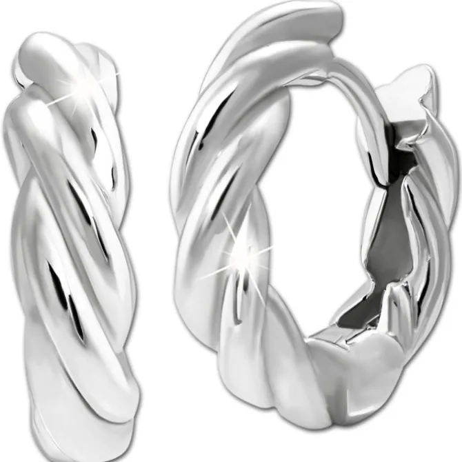 Ein Paar kleine Creolen Twist, geflochtene Ohrringe aus unserer einzigartigen SilberDream Schmuck Kollektion aus allergenfreiem 925 Sterling Silber. Die Ohrringe sind gut für den Alltag geeignet und lassen sich mit anderen Schmuckstücken gut kombinieren.