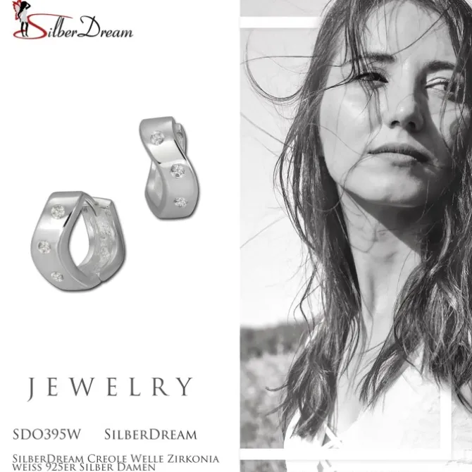 - Kurzbeschreibung: SilberDream Damenohrringe Creole Welle Zirkonia 925er Silber