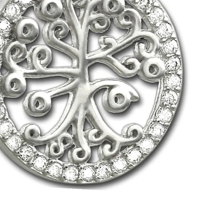 Ein Ketten Anhänger – Lebensbaum weiß – mit vielen weißen Zirkonia Kristallen und 925 Sterling Silber. Dieser Kettenanhänger ist geeignet für Halsketten bis zu einer Stärke von 4mm. Die Kristalle erstrahlen auf dem Anhänger in klarem weiß. Der Anhänger ist auch in einem Set mit einer Kette und den passenden Ohrringen erhältlich.