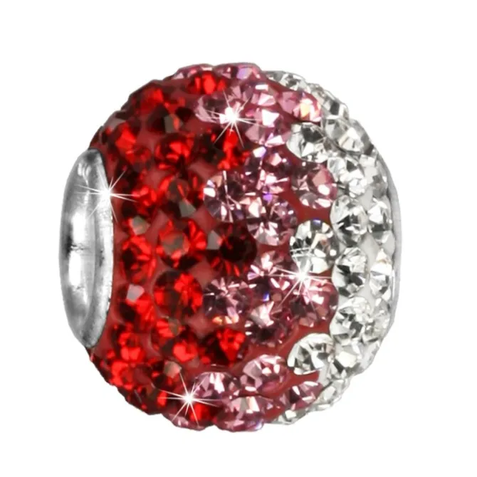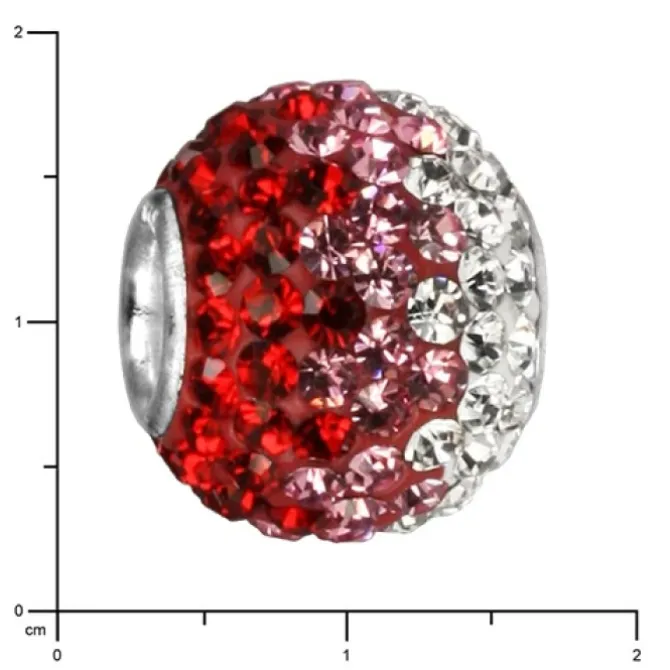 Ein Bead mit Zirkonias Kristallen – mit Zirkonias Kristallen rot Ice – mit 925 Silber Kern für Bettelarmband oder Halskette. Das Bead ist im European Bead Stil gefertigt. Die Zirkonias erstrahlen auf dem Bead im ICE Farbverlauf.