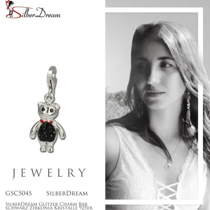 - Kurzbeschreibung: SilberDream Glitzer Charm Teddybär schwarz